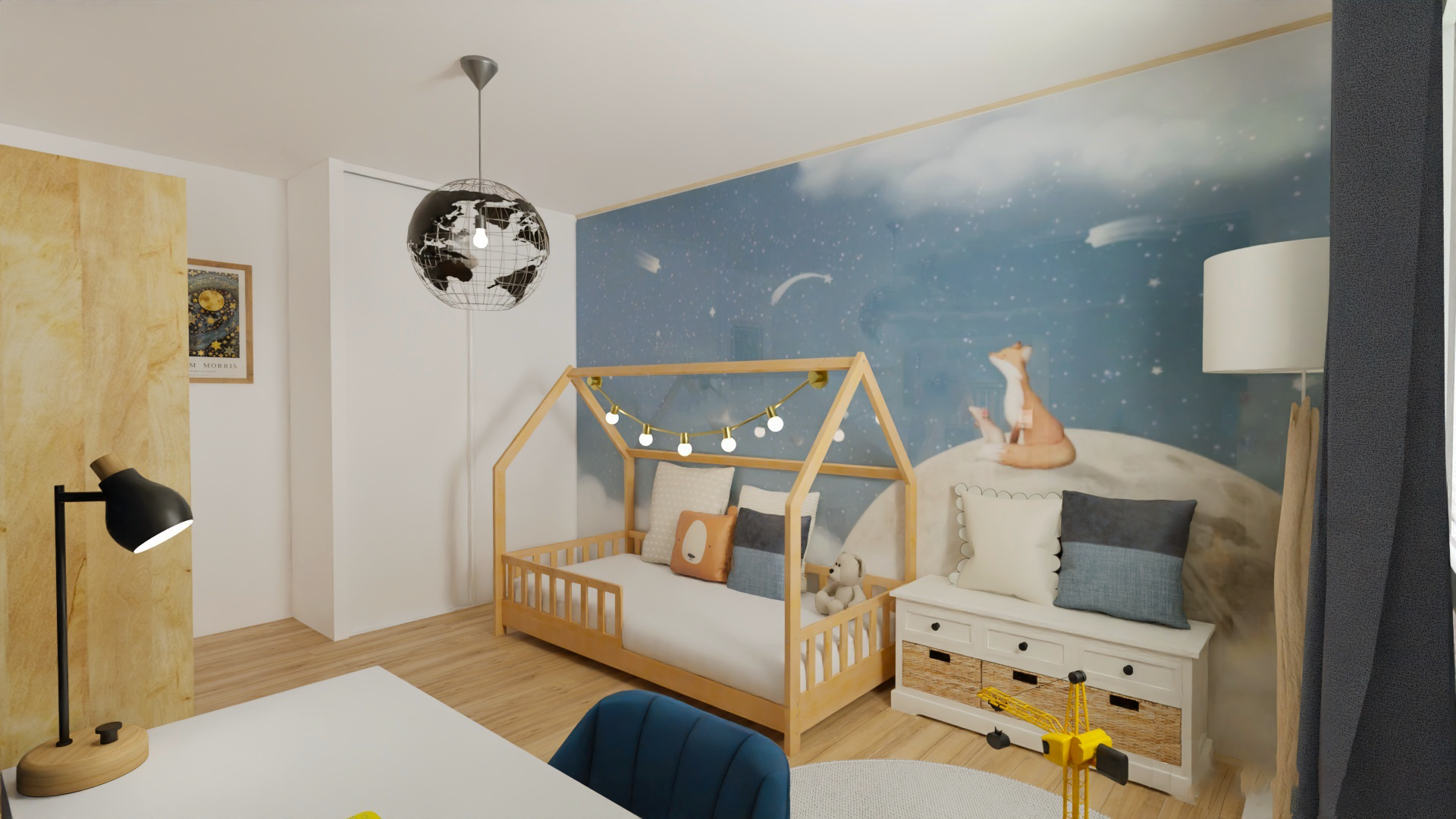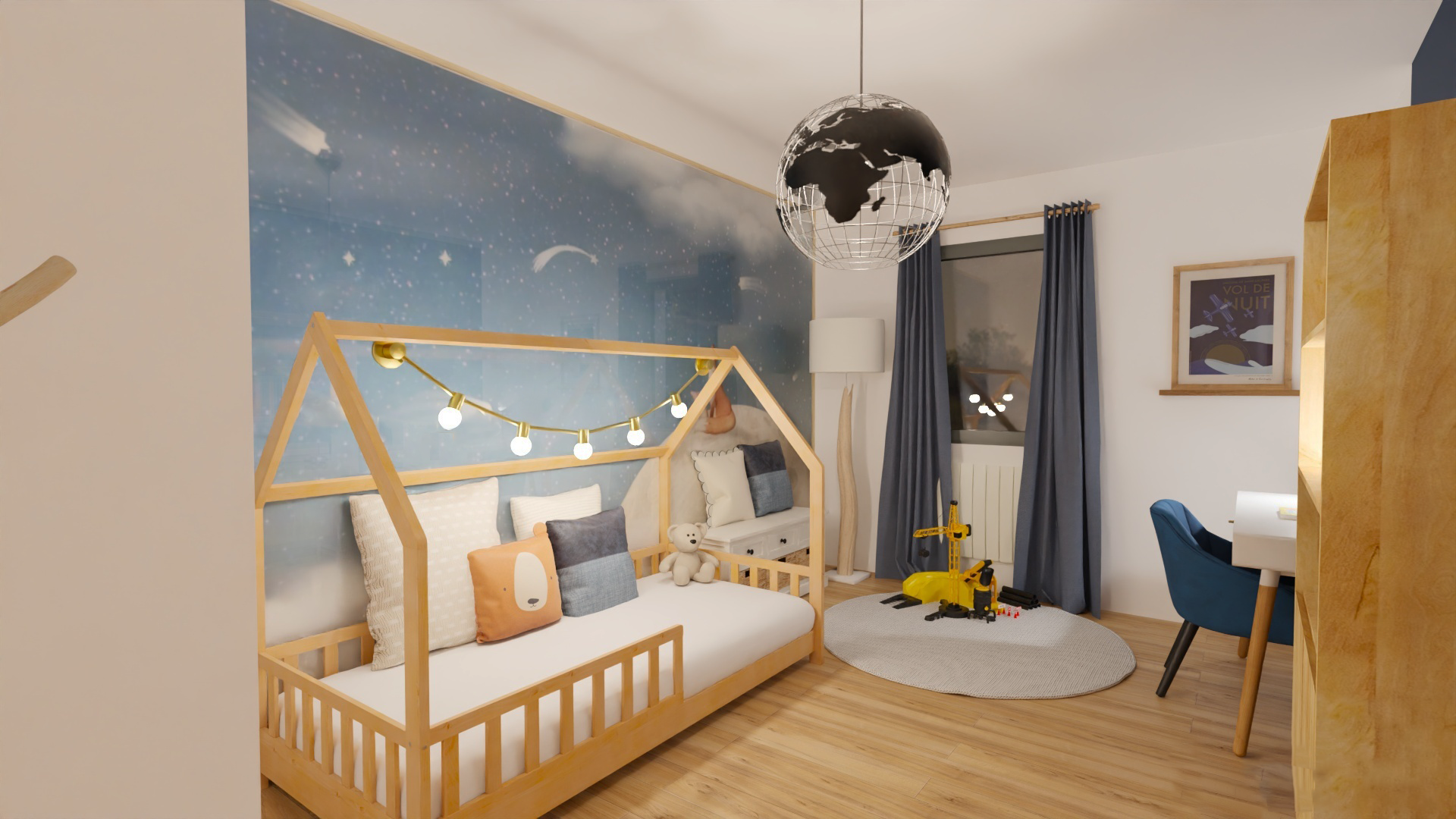 MISSIONS : Décoration de toutes les pièces de la maison (hors salle de bains) / Réflexion sur l’agencement du séjour (salon et salle à manger) grâce à l’aménagement et la décoration (50 m²) / Aménagement sur-mesure pour l’espace séjour (meuble TV notamment), le bureau et la tête de lit de la chambre parentale.